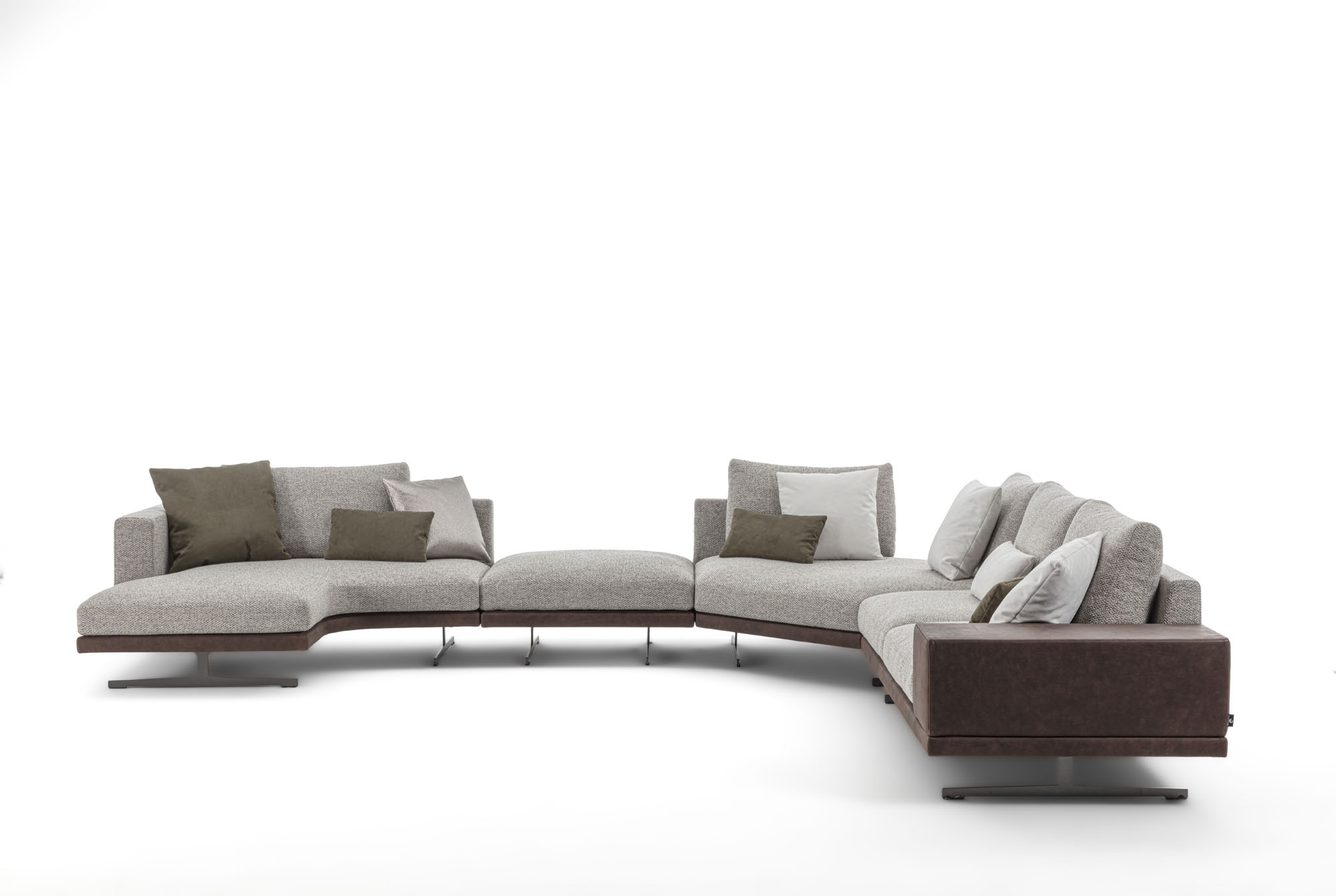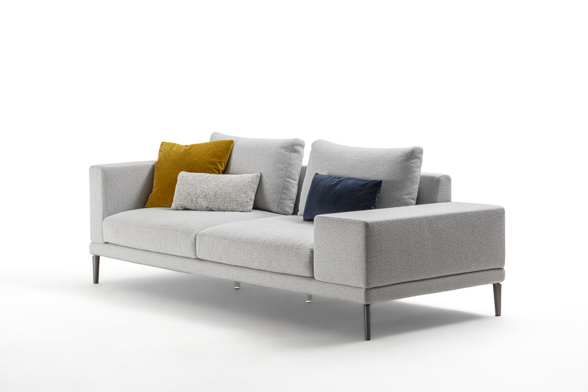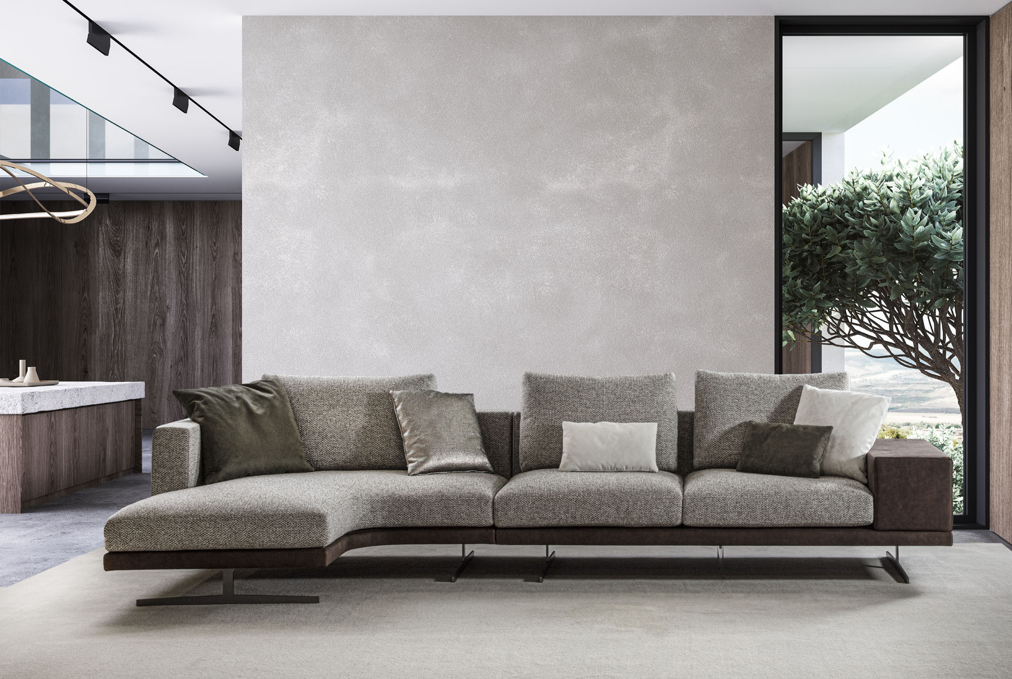 Cuscini seduta a triplice densità di in poliuretano espanso, accoppiato ad un trapuntino in vera piuma, il tutto ricoperto in tessuto a tenuta di piuma. Cuscini schienale in FILPIUMA (speciale miscela soffice e ipoallergenica composta da vera piuma e fibra siliconata cava) con inserto in poliuretano espanso, il tutto ricoperto di tessuto a tenuta di piuma. Rivestimenti in tessuto completamente sfoderabile o in pelle naturale non sfoderabile. Cuscini seduta e schienale sempre sfoderabili.