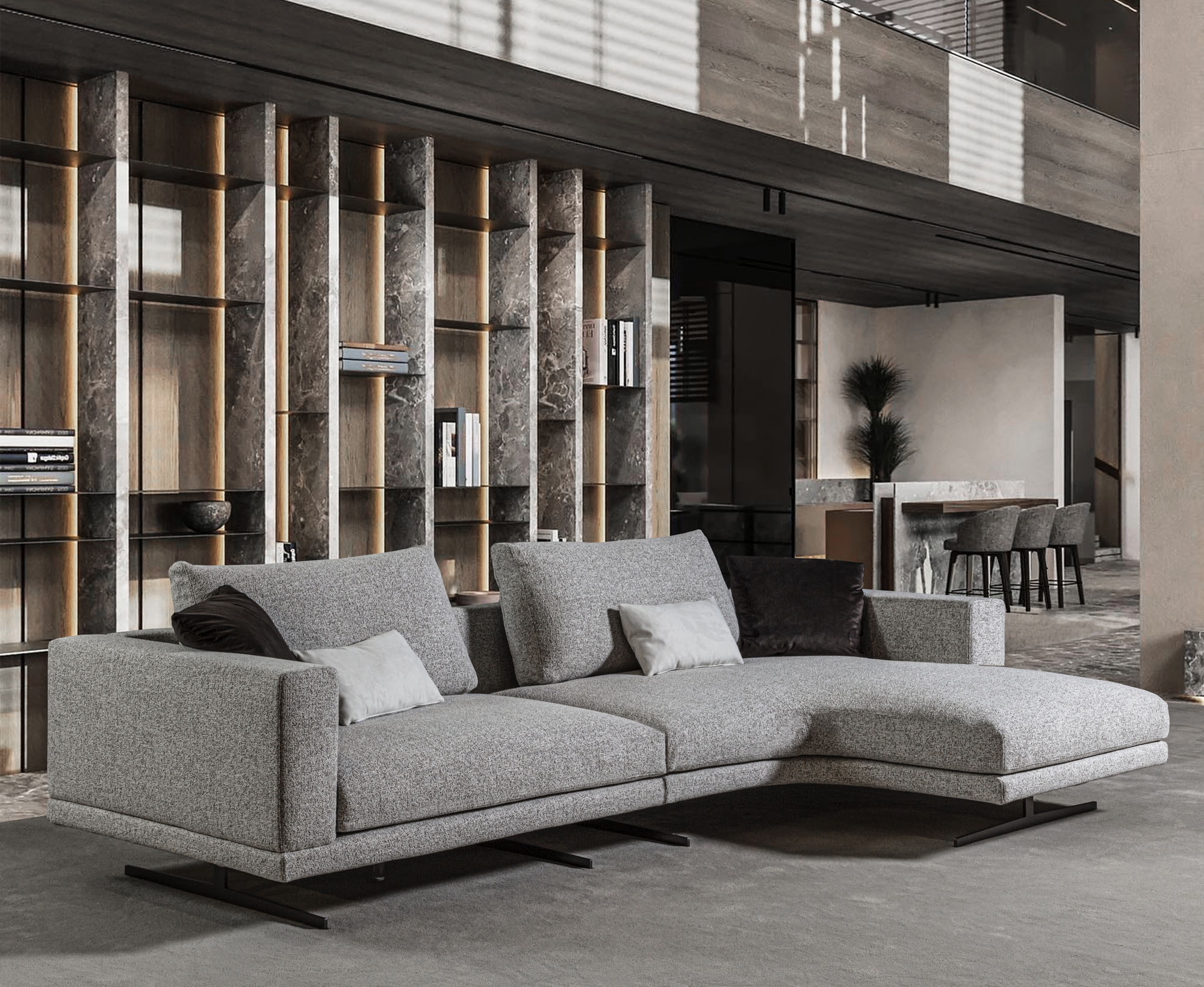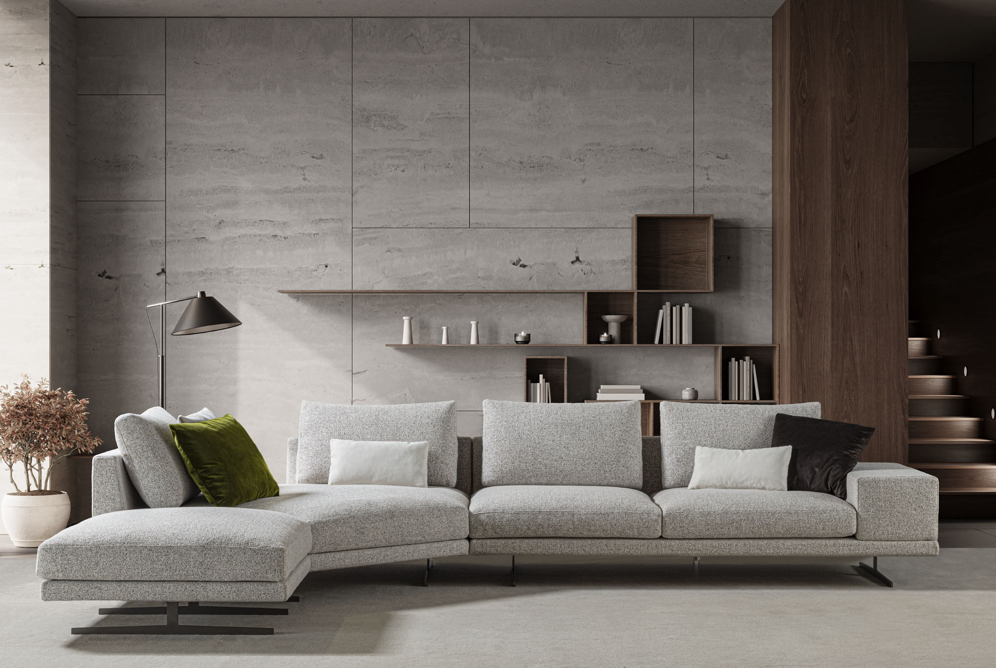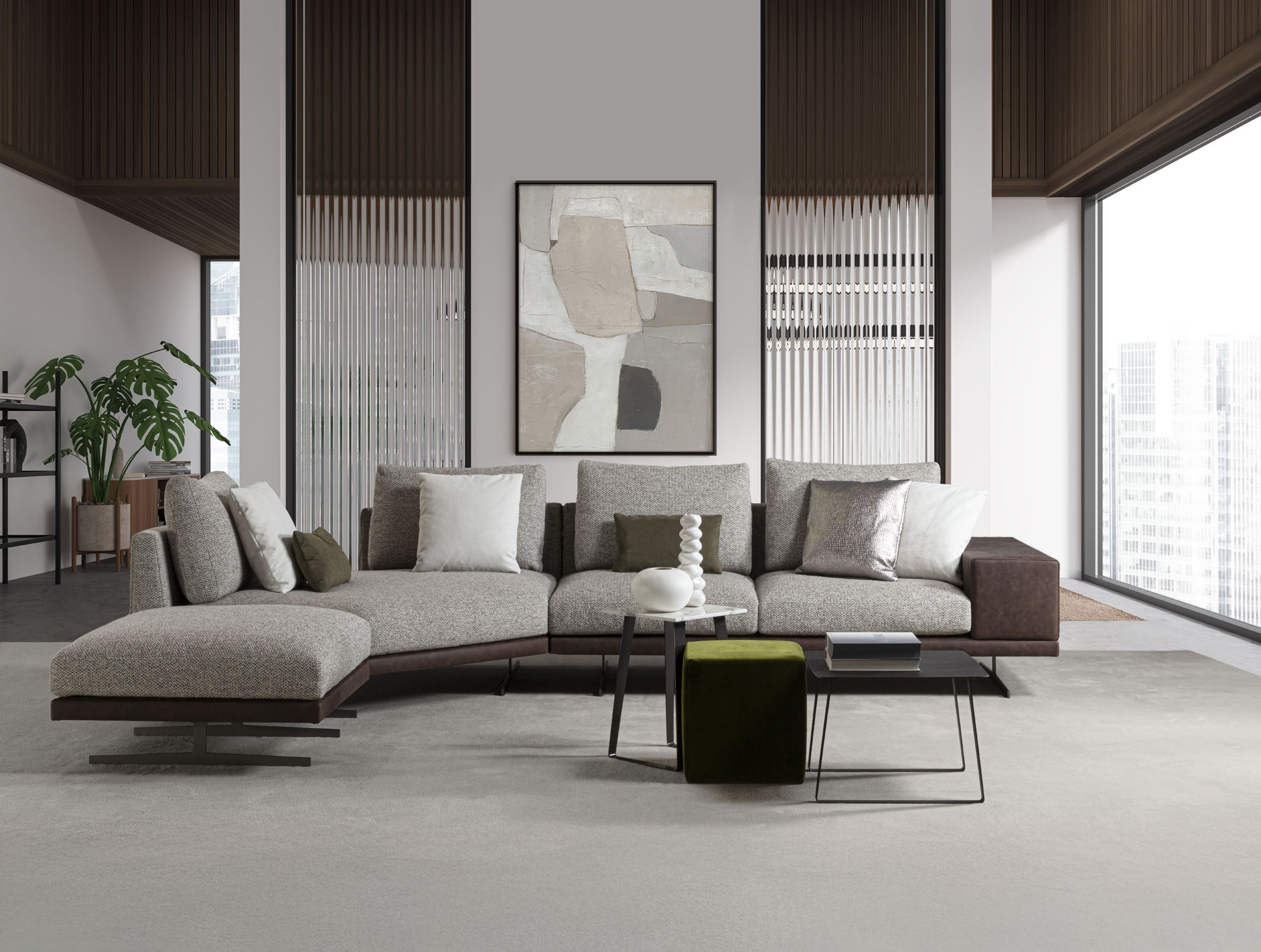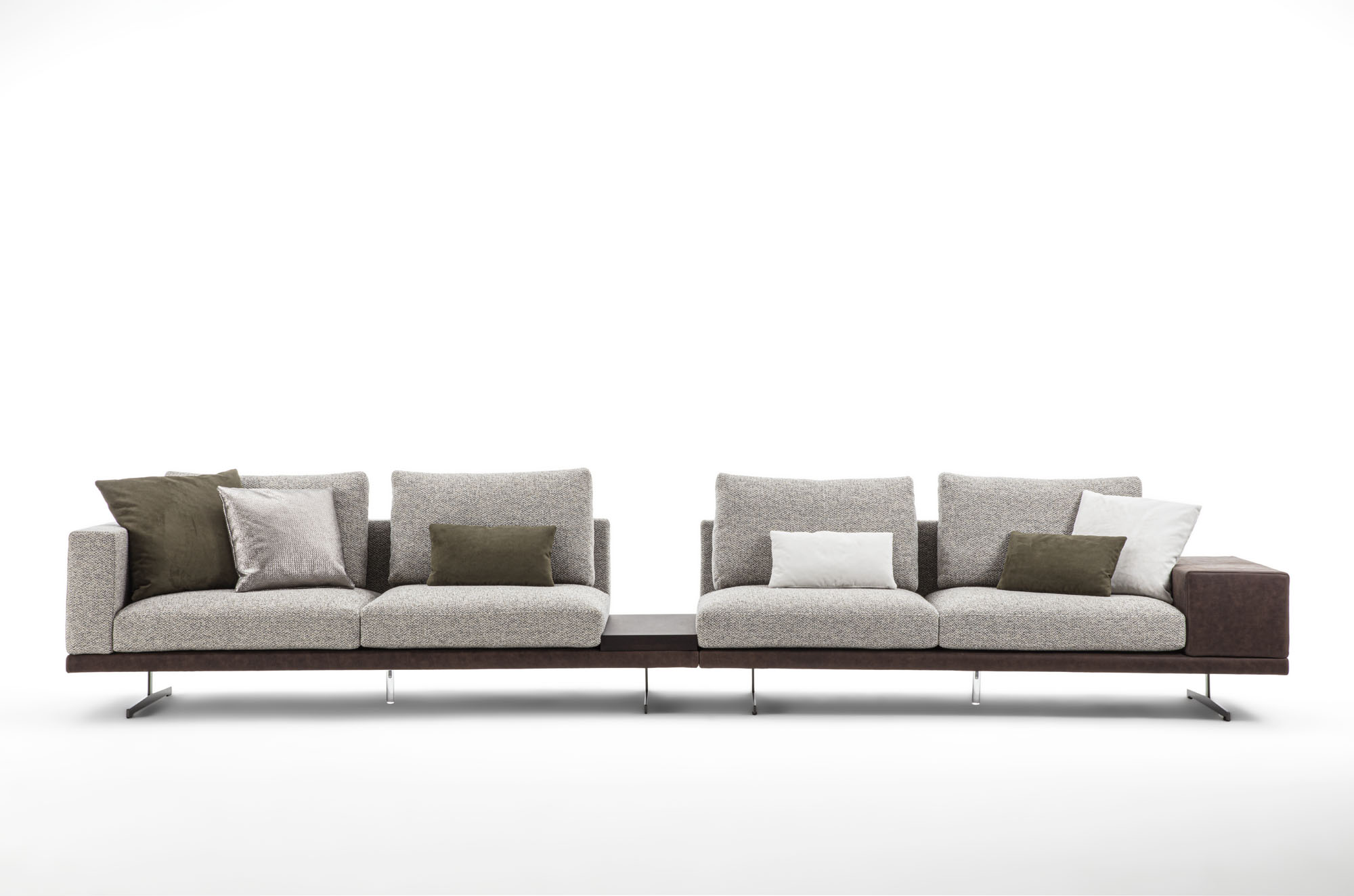Cuscini seduta a triplice densità di in poliuretano espanso, accoppiato ad un trapuntino in vera piuma, il tutto ricoperto in tessuto a tenuta di piuma. Cuscini schienale in FILPIUMA (speciale miscela soffice e ipoallergenica composta da vera piuma e fibra siliconata cava) con inserto in poliuretano espanso, il tutto ricoperto di tessuto a tenuta di piuma. Rivestimenti in tessuto completamente sfoderabile o in pelle naturale non sfoderabile. Cuscini seduta e schienale sempre sfoderabili.