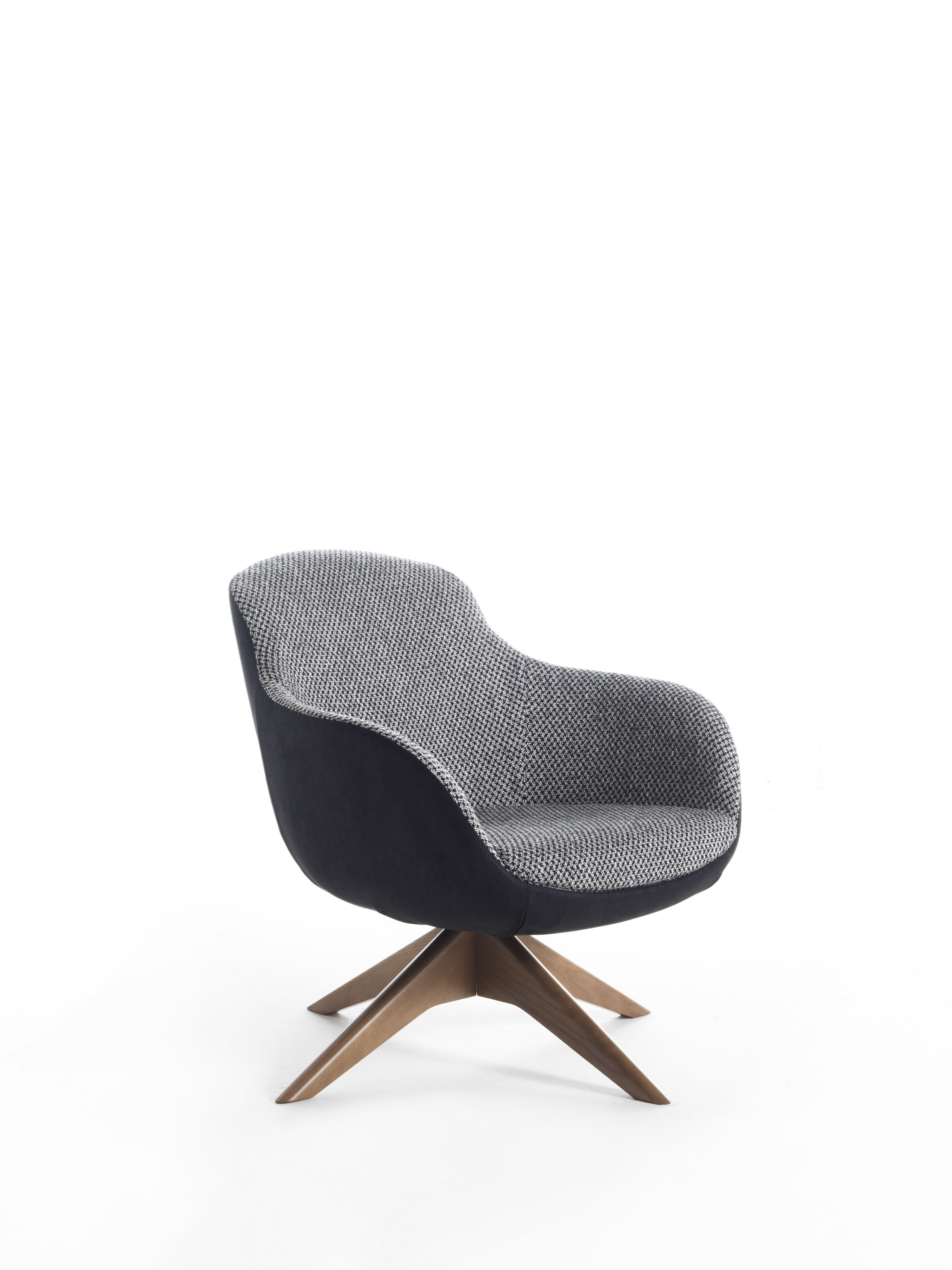 Basamento girevole in metallo cromato lucido oppure in legno nelle finiture frassino naturale, rovere naturale o noce scuro.