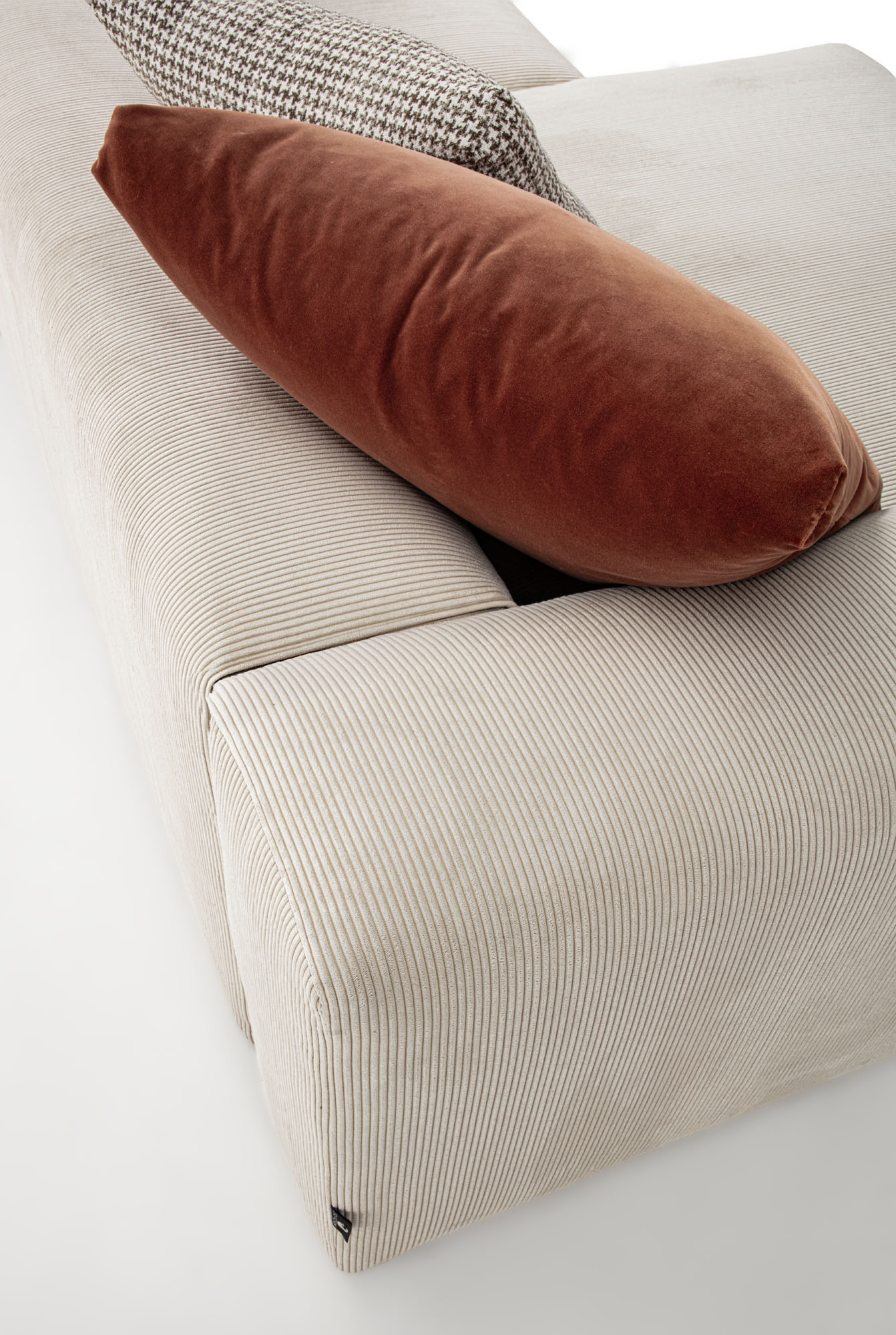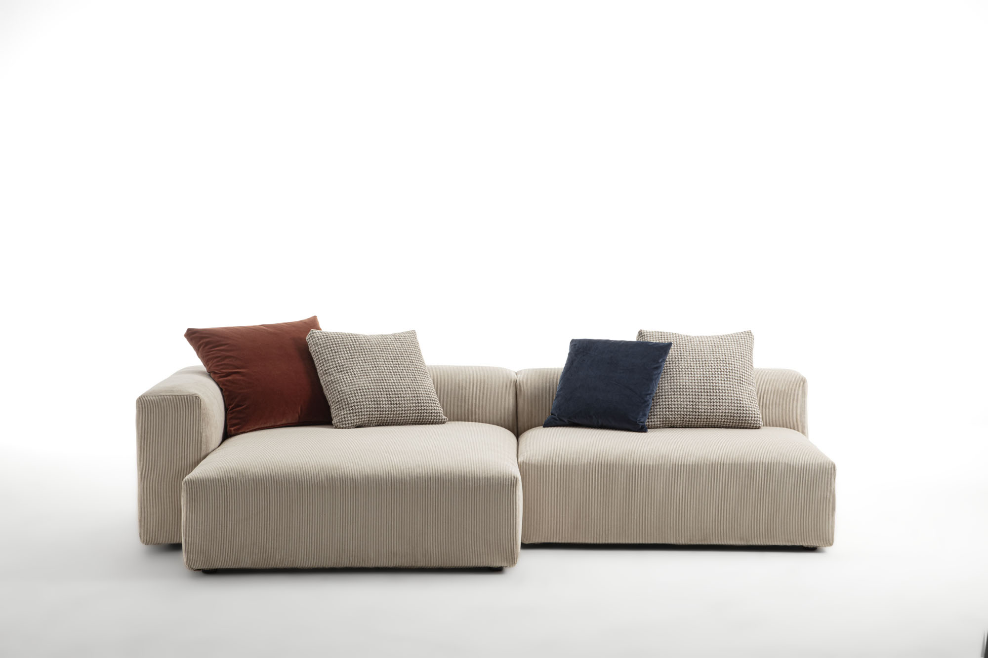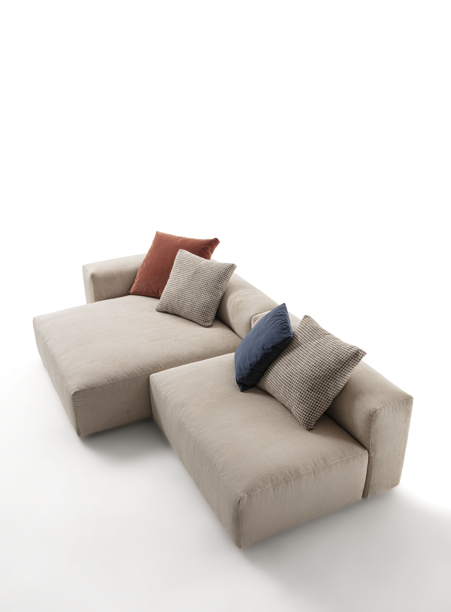 Sedute monoscocca in poliuretano espanso a quote differenziate accoppiato ad un trapuntino in piuma, il tutto ricoperto di tessuto in puro cotone a tenuta di piuma. Cuscini schienale in filpiuma (speciale miscela soffice ed ipoallergenica composta da vera piuma e fibra siliconata cava), il tutto ricoperto di tessuto in puro cotone a tenuta di piuma. Rivestimenti in tessuto completamente sfoderabile o in pelle naturale non sfoderabile. Cuscini schienale sempre sfoderabili.