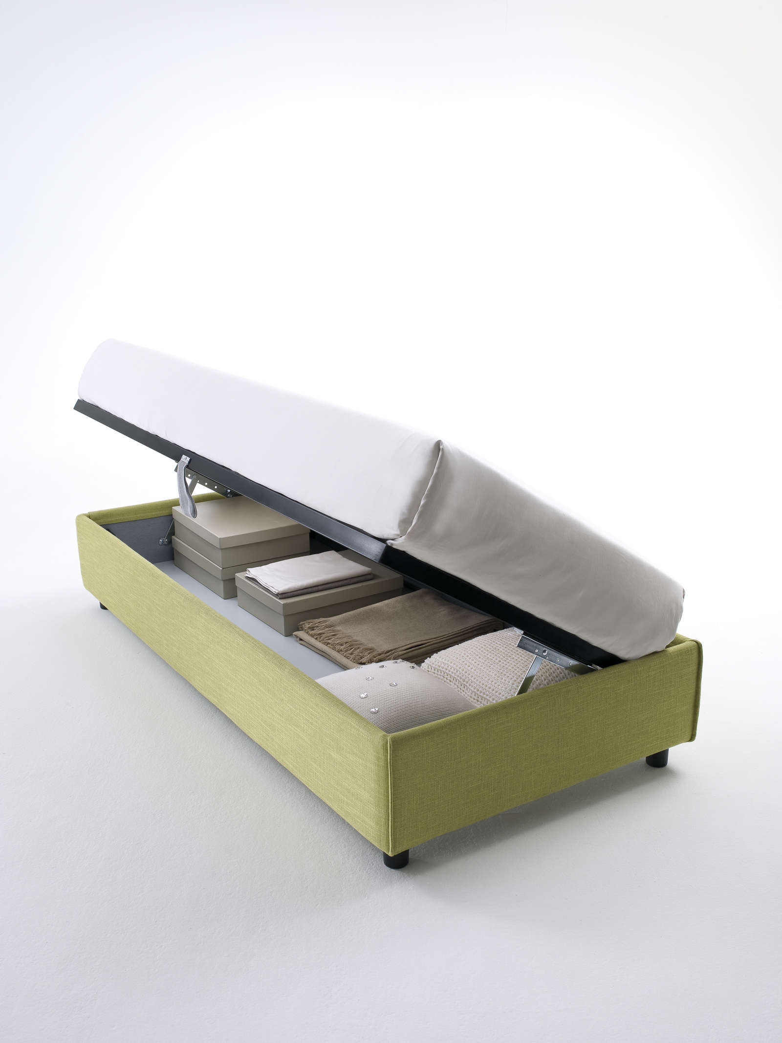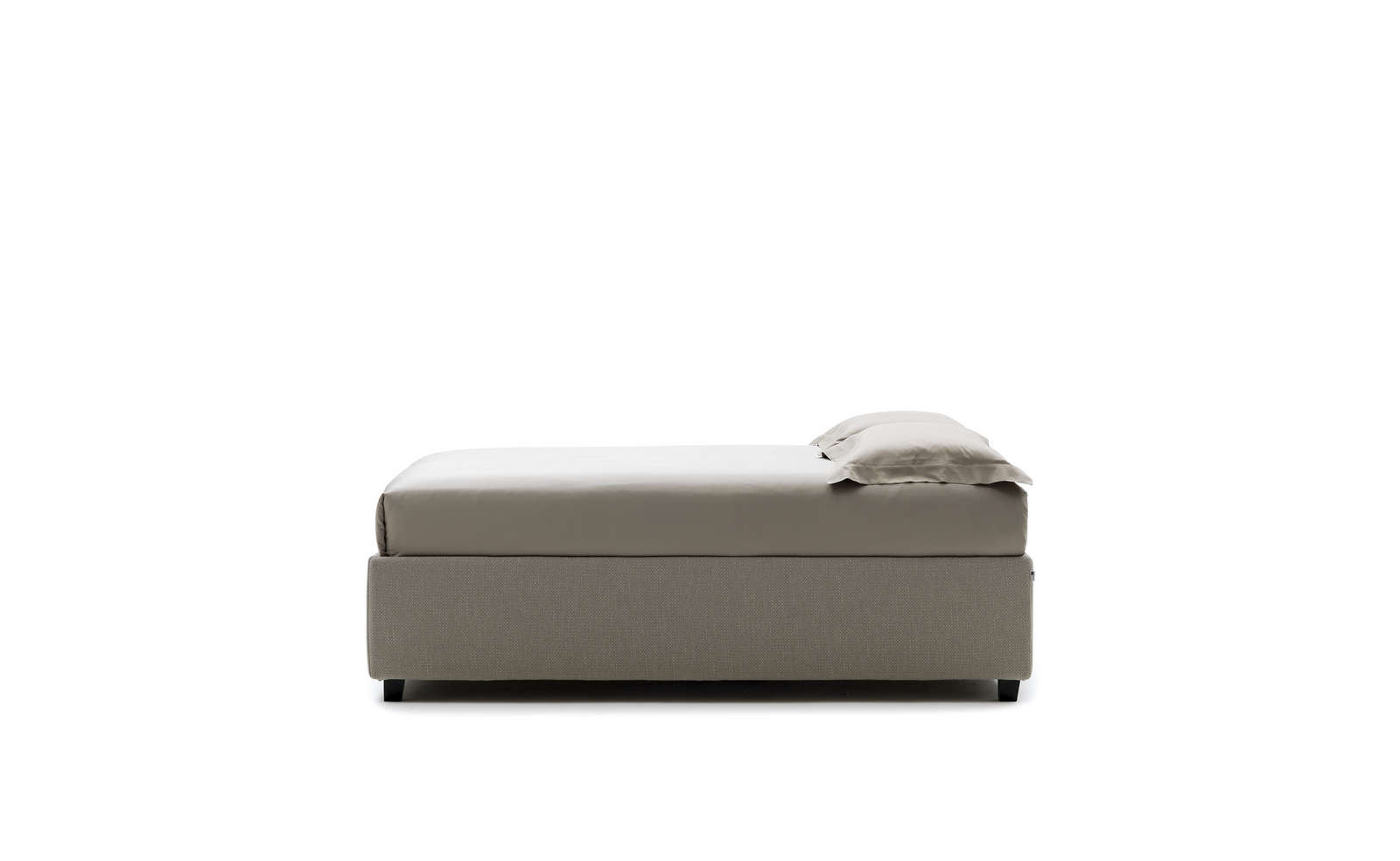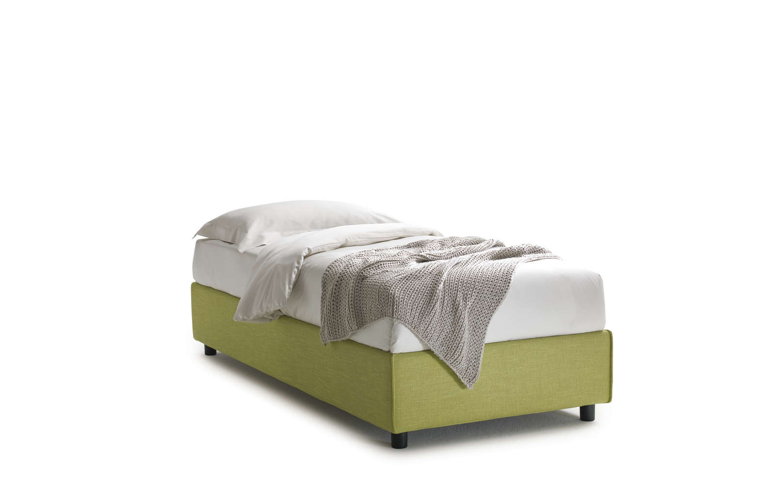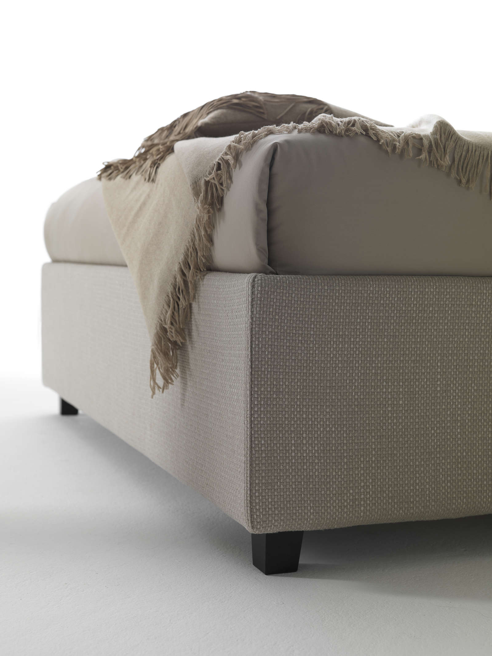 Struttura semplice in legno e derivati ricoperta in vellutino accoppiato con poliuretano espanso.