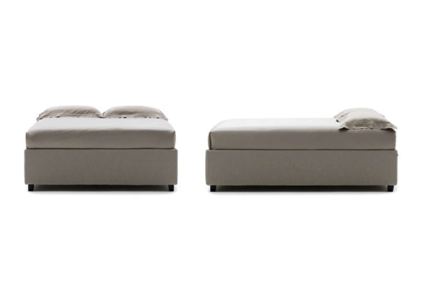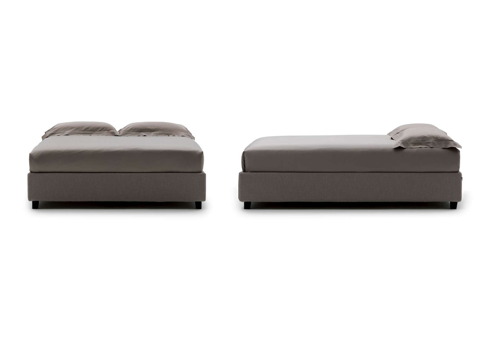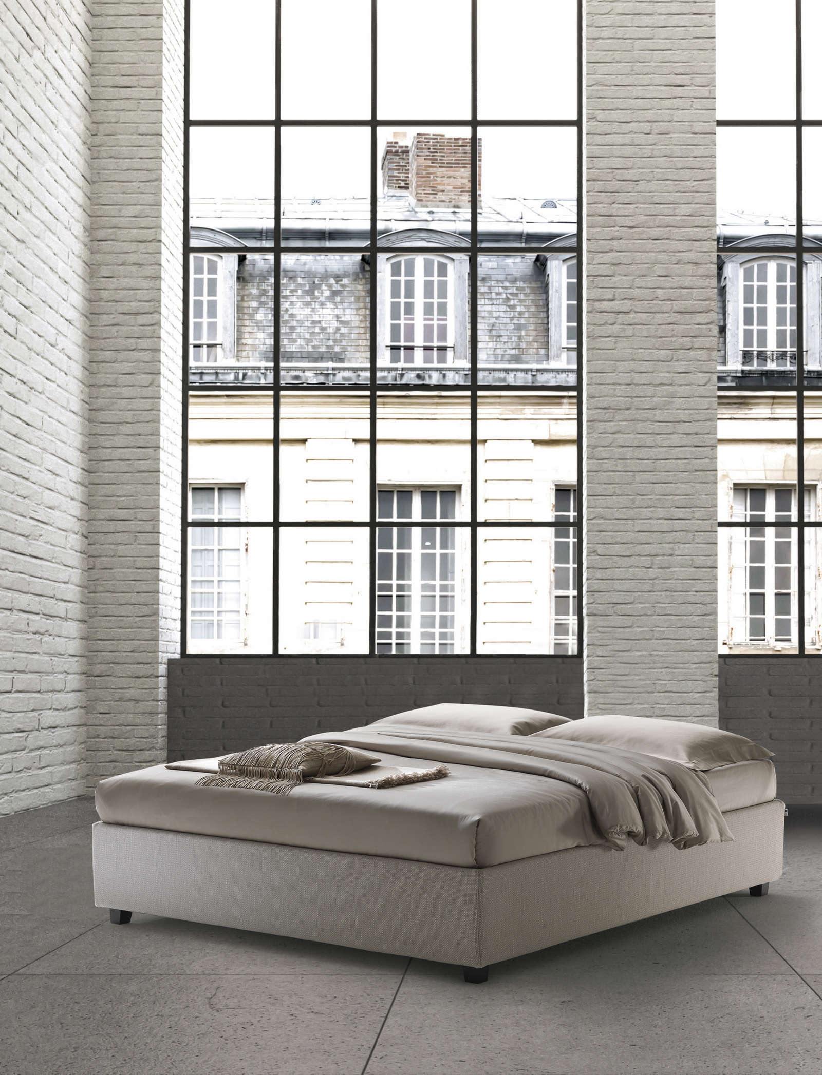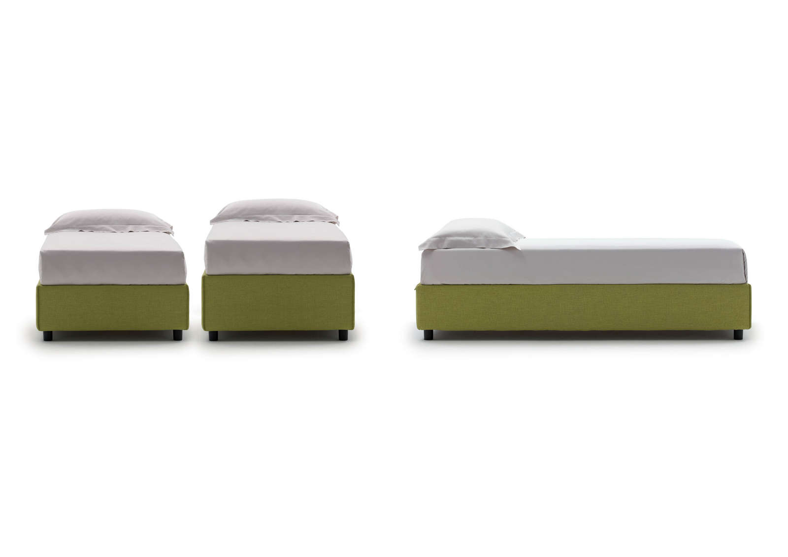 Struttura semplice in legno e derivati ricoperta in vellutino accoppiato con poliuretano espanso.